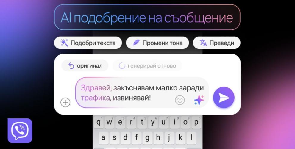 Rakuten Viber обяви старта на AI подобрение на съобщение - нова възможност, която позволява на потребителите да прецизират и превеждат съобщения директно в полето за писане преди изпращането им.
