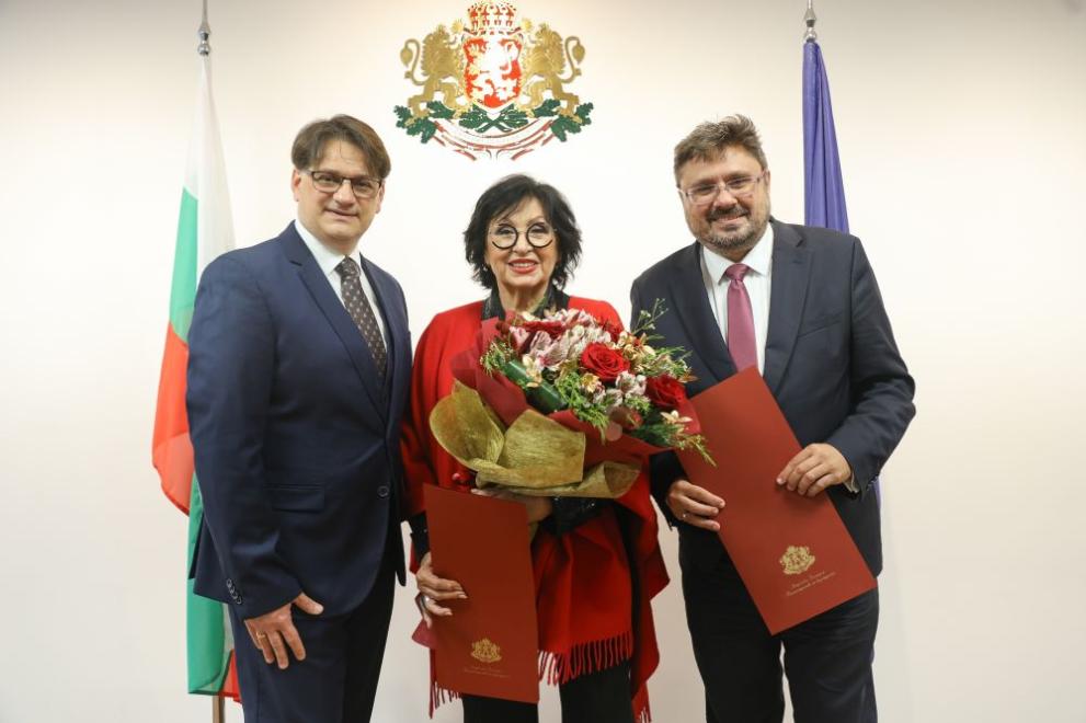 „Г-н Вълчев, който пътува по света и създава общности като семейства, получава награда именно днес. А г-жа Христова е майка на поколения българи“, каза министърът на културата.