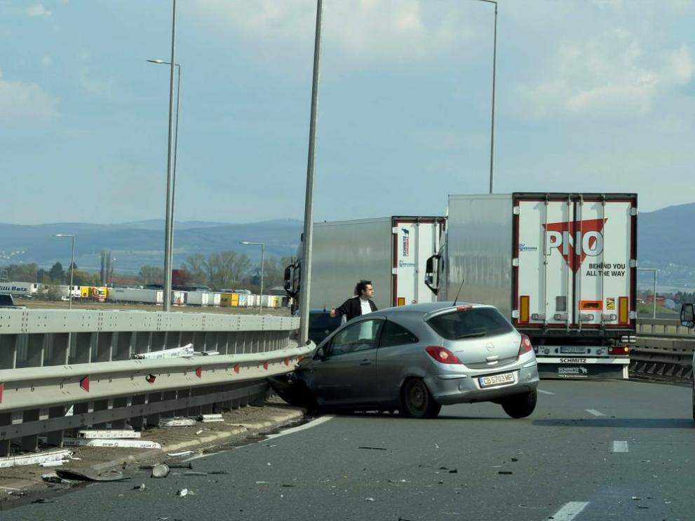 Шофьор катастрофира на Северна тангента. Инцидентът е станал на подхода за Ботевградско шосе към автомагистрала „Хемус“. Това съобщиха очевидци за DarikNews.bg.