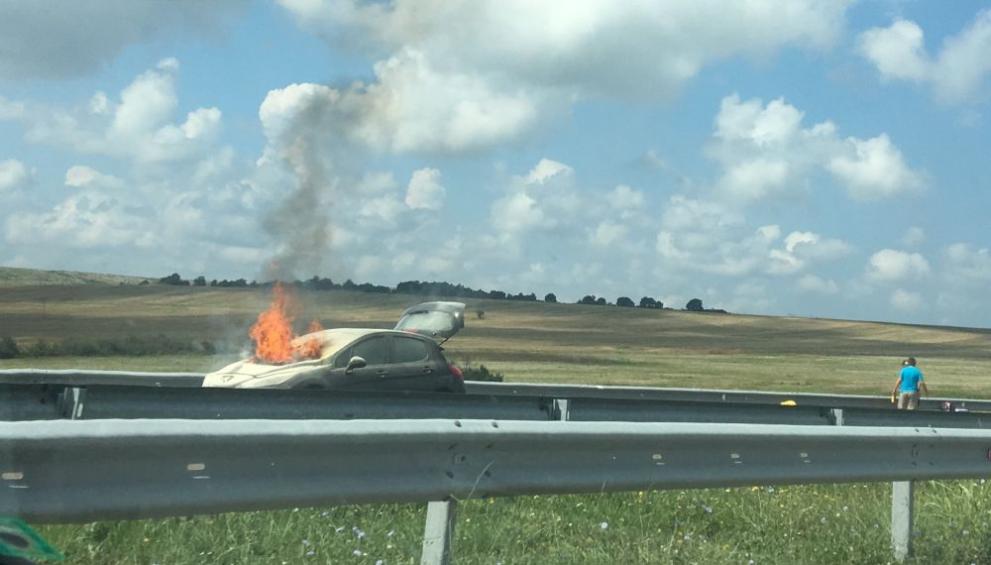 Лек автомобил се запали на 333-ти км на Автомагистрала „Тракия” край Карнобат, съобщи БГНЕС.