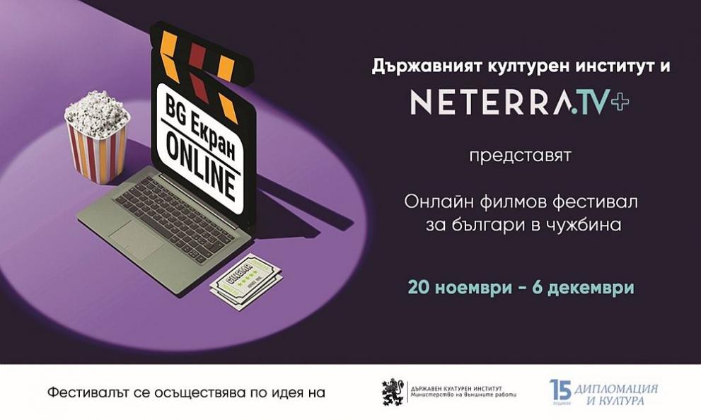 Сънародниците ни в чужбина могат да гледат 22 български филма безплатно в рамките на фестивала „БГ екран онлайн“, който стартира на 20 ноември 2020 г. Събитието е организирано от Държавния културен институт към министъра на външните работи и се осъществява с подкрепата на българските дипломатически и консулски представителства по цял свят.