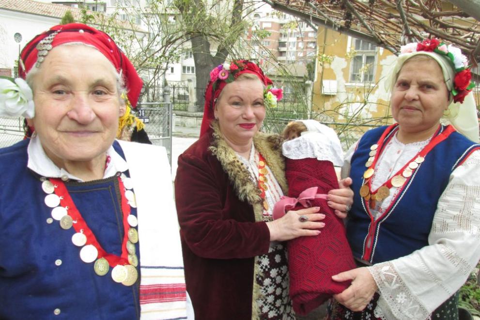 Още преди изгрев слънце майките с деца от една до тригодишна възраст отиват на чешмата да налеят прясна вода. В котлето с водата пускат стрък босилек или здравец. Вземат калъп сапун и една нова кърпа и се отправят към дома на бабата да "полеят". Обредното поливане на бабата-акушерка се извършва под плодно дърво в градината, върху дръвника или отпред на стълбите. Всяка жена подава на бабата сапуна, полива вода да се измие и я дарява с пешкира, който е донесла. След това бабата избърсва мокрите си ръце в полите на невестите – да са плодовити и лесно да раждат. Бабата закичва невестата и с китка здравец, вързана с "мартеничка" - червен и бял конец. Често при поливането бабата хвърля с шепите си вода нагоре и подскача три пъти, като изрича: "Да рипкат децата и да станат бели и червени! Колкото капки, толкоз берекет и здраве!".