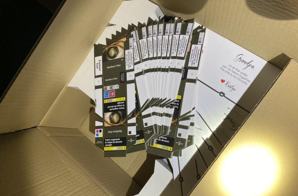 Инспекцията е извършена около 19:30 ч. на 6 октомври. При проверка на пътния състав – влекач и ремарке с български шофьор, пътуващ от Гърция към Нидерландия – митническите служители установили в товарното помещение шест палета с кашони, част от които били отворени на избирателен принцип. В тях са намерени 315 кашона с общо 1 014 300 изрязани заготовки за кутии за цигари с логото на популярна марка, както и 1 фолирано пале с 80 бобини (600 кг) коркофан, обозначени с логото на друга известна марка цигари.