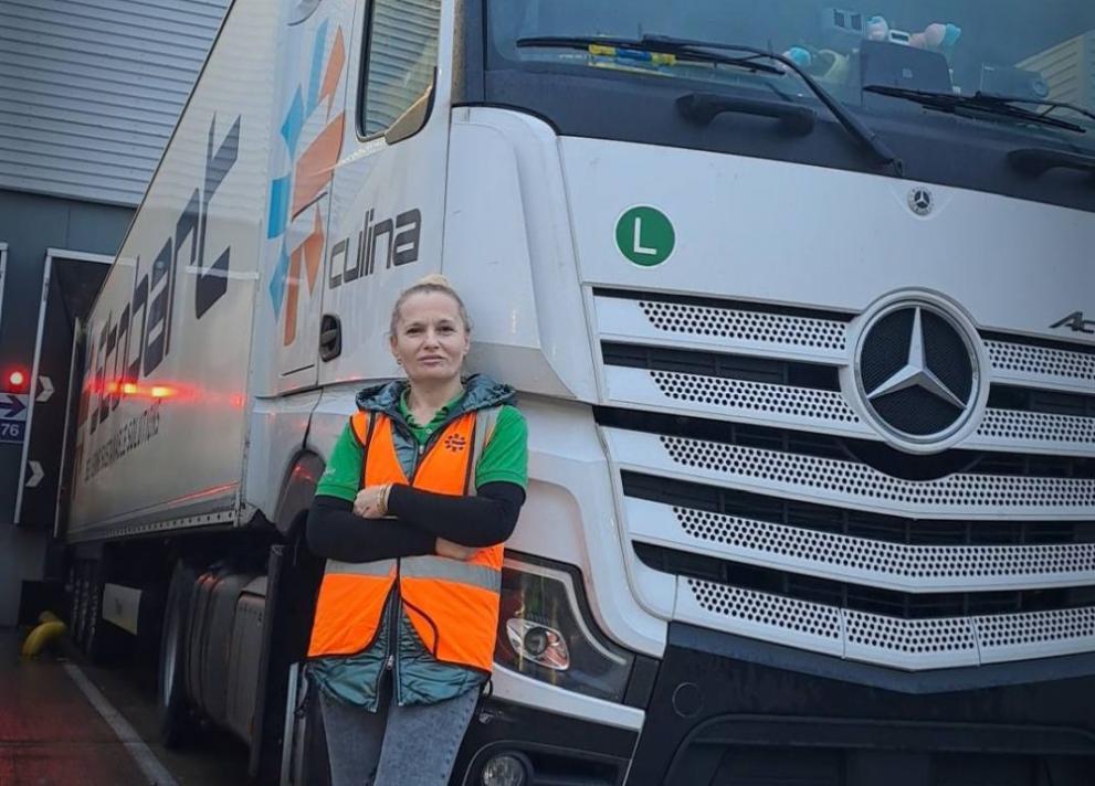 Зад крехката ѝ фигура стои една силна жена, която управлява 40-тонен камион из Европа. Мъжът ѝ също е шофьор, и заради него тя се мотивира да изкара курс и се качва на тир, докато детето ѝ е още бебе. „Мислех, че няма да успея. Моят мъж ме научи да карам, седем години карахме контейнери като двойка“. След раздялата им тя напуска и започва работа в нова фирма.