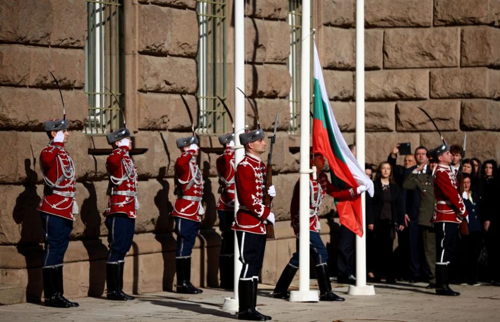 Националният флаг беше издигнат пред сградата на президентската институция по случай Деня на народните будители. Президентът Румен Радев прие строя на Националната гвардейска част.