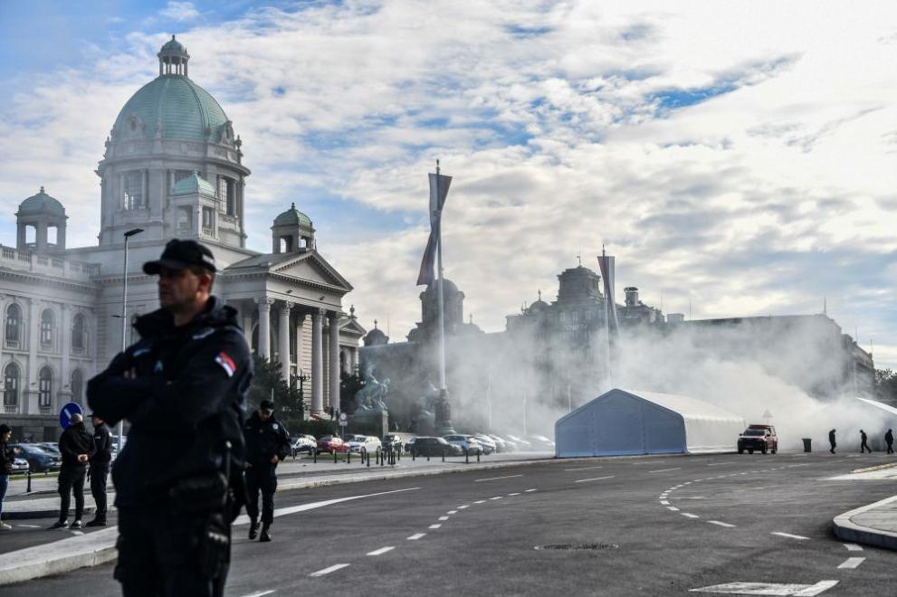 Стрелба и пожар пред парламента в Сърбия, заплашиха опозиционен лидер