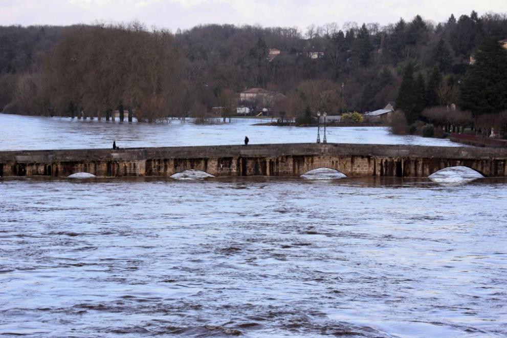 Според метеорологичната служба "Метео Франс" опасенията от наводнения в югозападната част на страната продължават, въпреки че предупрежденията за вятър бяха отменени.