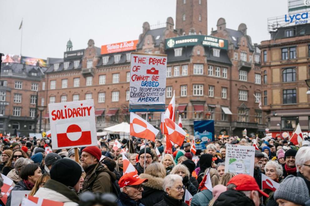 Хиляди хора излязоха с датски и гренландски знамена в столицата Копенхаген и други градове, за да протестират срещу исканията на американския президент Доналд Тръмп да поеме контрола над Гренландия, предаде ДПА.
