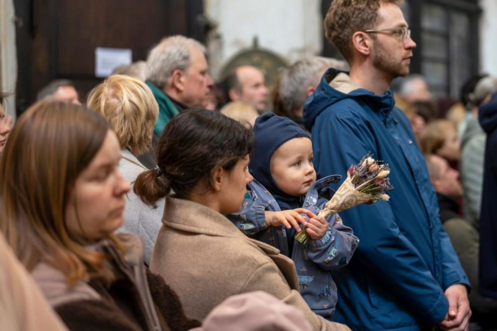 Литургията започна с благославяне на маслиновите клонки, а вярващите ги носеха в шествие и ще ги пазят в домовете си до следващата Цветница.