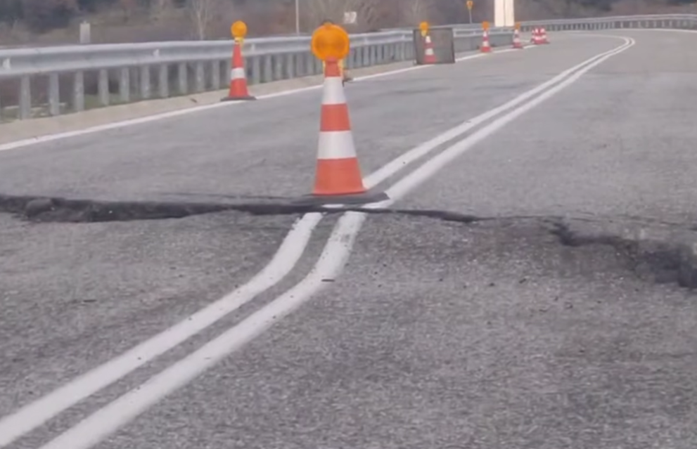Асфалтовата настилка е поддала и в двете платна за движение, в резултат на което шофьорите са изправени пред пукнатина с ширина около 20 сантиметра, която е невъзможно да бъде избегната.