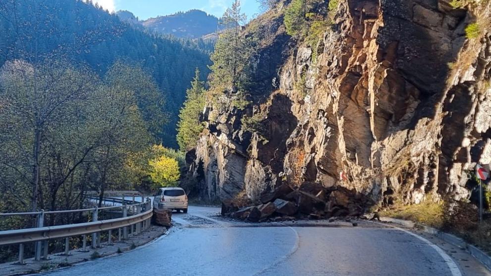 Временно ограничение на движението е въведено по пътя Стойките – Широка лъка в участък, в който е паднала скална маса, съобщиха за БТА от Областното пътно управление в Смолян. Преминаването през засегнатия участък се извършва в едното платно.