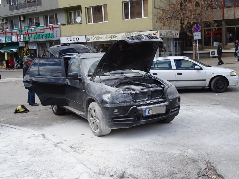 Джип БМВ пламна в движение в Благоевград.