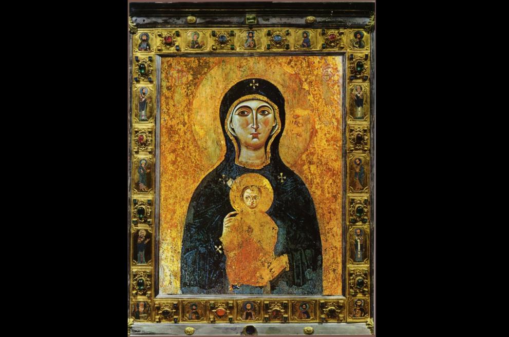 Допълват, че по време на Четвъртия кръстоносен поход през 1204 г. иконата е пренесена във Венеция, Италия, където и до днес украсява левия олтар на катедралата "Сан Марко". Нейното копие е създадено, за да се помни образа и да се почита Света Богородица Победоносна, както и за вдъхновение на защитниците на вярата.