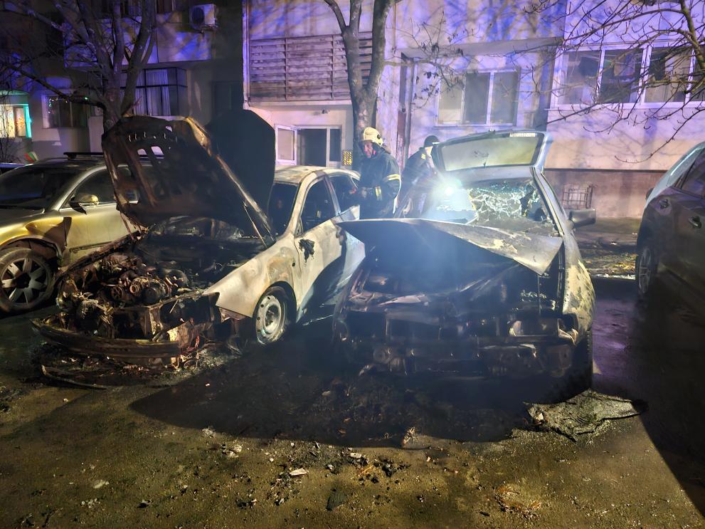 Пожар изпепели автомобили в русенския квартал „Дружба“.