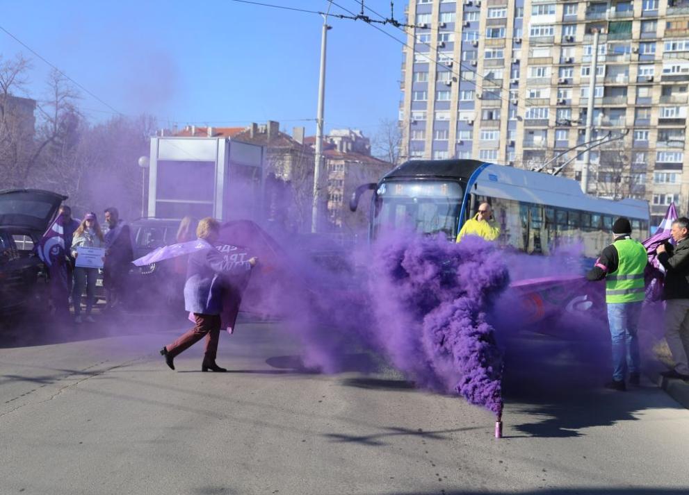 Протестиращи от общинския транспорт в Русе и представители на КНСБ блокираха част от централно кръгово кръстовище в Русе, намиращо се до зала "Арена Русе", за около половин час.