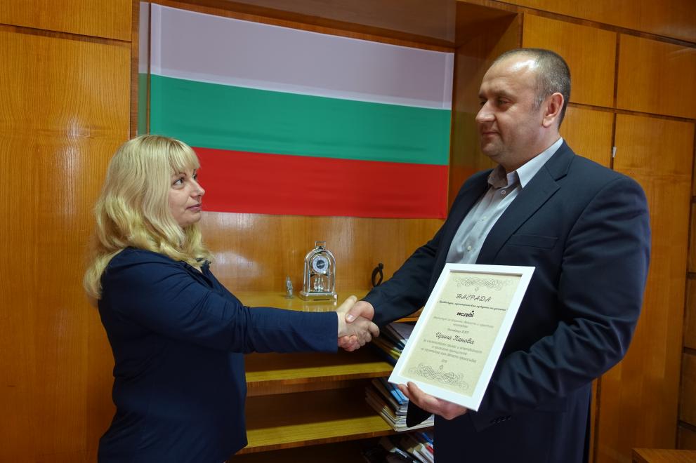 Отличието й бе получено в полицейското управление в Шумен и връчено от началника на РУ-Шумен гл. инсп. Илиян Николов. Годишната награда е за работата й в Детска педагогическа стая и сътрудничеството с ИСДП. Темата за децата в конфликт със закона е една от водещите за института.
