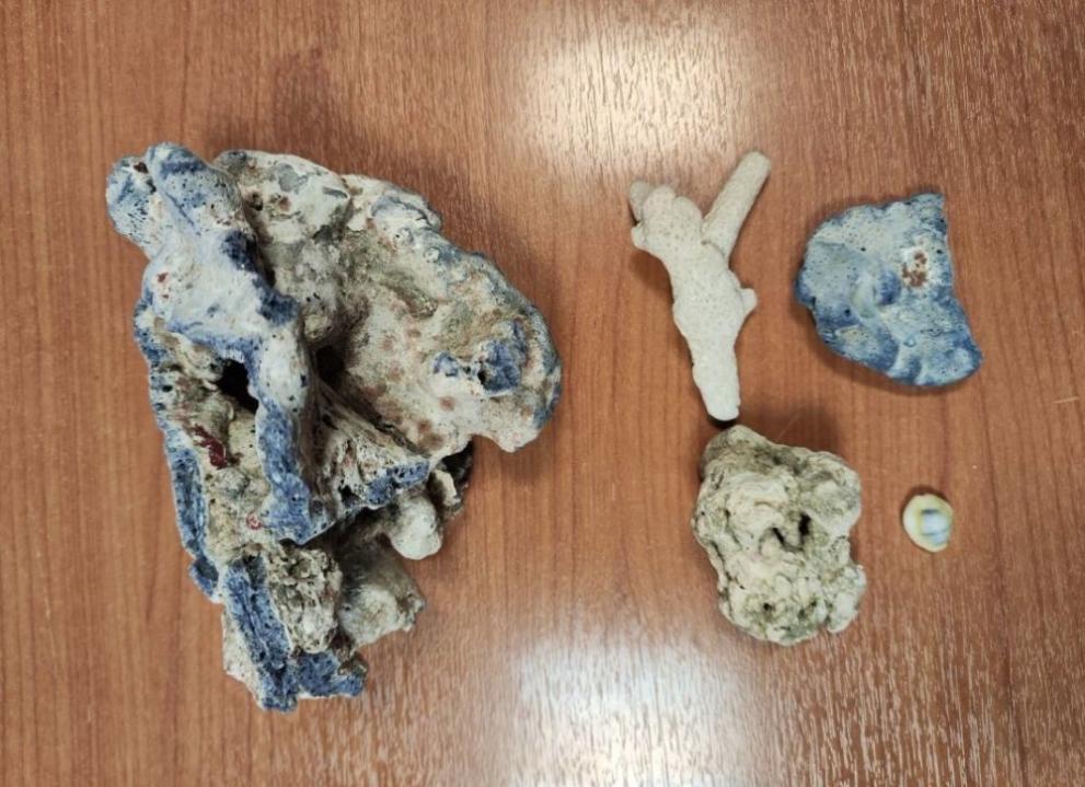 При последвалата физическа проверка в куфара са открити четири морски скални екземпляри корали.