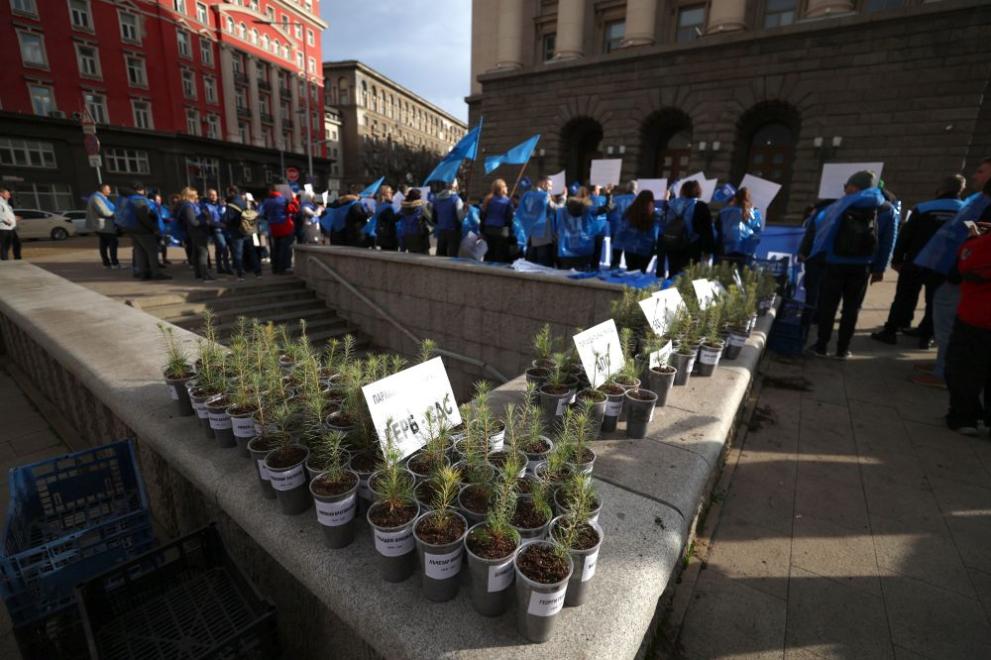 На мястото имаше чаши със засадени борови дръвчета, всяка от които носи името на парламентарен представител от всички парламентарни групи. "Ако не свършат нещо, поне да са засадили едно борче, за да има някаква полза от тях", каза Павел Чарийски, заместник-председател на Федерацията.