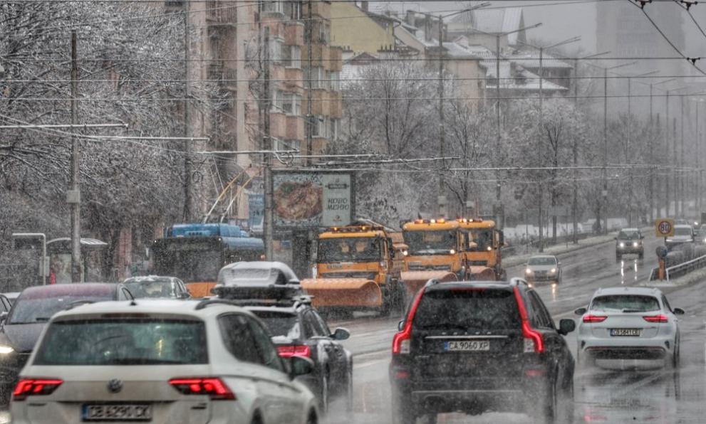 Във връзка със снеговалежите в София през тази нощ са извършени обработки със смеси срещу заледяване и снегопочистване.