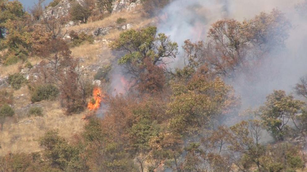 Има опасност да навлезе в борова гора. Местността е труднодостъпна, като пожарникари и горски се опитват да спрат огъня на ръка.