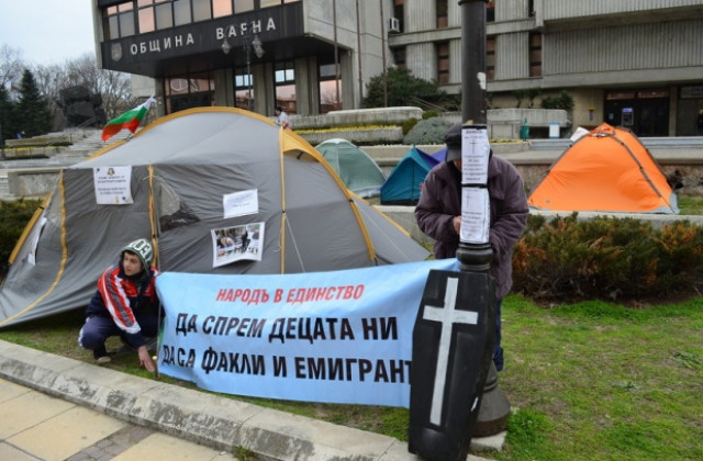 Протестиращите варненци, които разпънаха палатки пред общината като знак на недоволство, че общинския съвет не подава оставка, са се натъкнали на неочаквана съпротива срещу действията си. Още през първата вечер на престоя си, те се оказали наобиколени от бездомни кучета. Така и не станало ясно дали четириногите са поискали да се скрият от студа или са решили да бранят територия, която смятат за своя. В крайна сметка с известна доза сила, протестиращите прогонили кучетата, разказа Людмил Стойчев, един от обитателите на палатките пред общината. Той засега не участва в гладната стачка на другия постоянен обитател на лагера, Младен Живков. Последният започна тази форма на протест в петък вечерта, след като до края на работния ден никой от варненските общинари и съветници не подаде оставка, пише petel.bg.