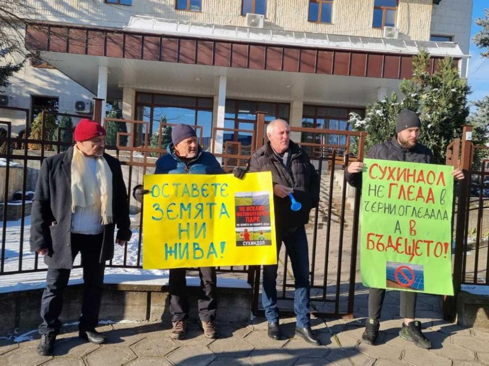 Жители на Сухиндол протестираха срещу изграждането на фотоволтаичен парк на площ близо 10 хиляди декара. Протестът се състоя днес пред сградата на Регионалната инспекция по околна среда и води (РИОСВ), където заседава екологичният експертен съвет по инвестиционно намерение за изграждане на фотоволтаичен парк на територията на община Сухиндол.